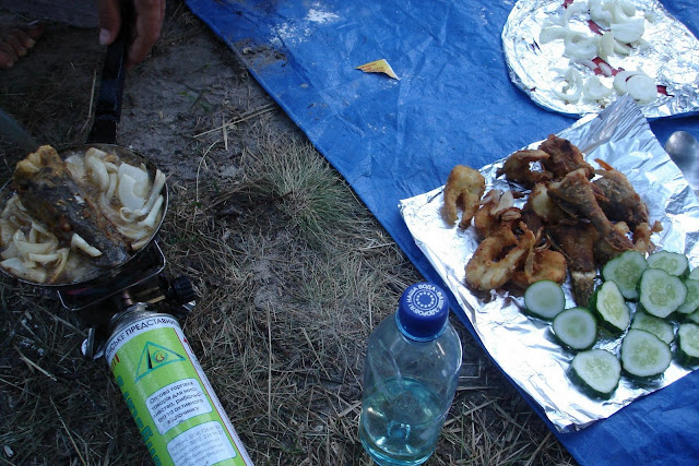 | Отчёт Андрея! Отчёт о 3-х дневном путешествии по Ворскле (Н.Млыны-Ст.Санжары).26.07-28.07.10 Жена давно просила вывезти её на речку, на шашлык, ну я и вывез…на 3-и дня… Была и речка, и шашлык, и 3-и незабываемых дня на сказочной, такой разной реке. Мелкой и быстрой, глубокой и тихой ,с резкими поворотами, чистыми песчаными пляжами и высокими обрывами, где не хочется лишний раз махнуть веслом, чтобы не нарушить сказочную тишину.»Кто во всём это не узнает, что рука Господа сотворила сие?»Иов12гл.,9стих. Благодаря моей жене, руки которой не были заняты спиннингом, появились эти фотографии, а я имел возможность спокойно рыбачить, пока она была на вёслах. Начало сплава -Н.Млыны. Выезжали маршруткой 7.05 на Богдана. У меня в рюкзаке 1-но местная лодка. Были конечно сомнения, как мы в неё поместимся да ещё с вещами, но всё оказалось нормально. Седушку я не ставил, рюкзаки - на дно, а сами- сверху, а место пассажира стало рулевым. Фотки, конечно, не смогут передать всей картины. За кадром остаются звуки и запахи… На воде мы были около 8-ми утра. До Безручек рыба нас не беспокоила поклёвками, поэтому мы в полной мере могли насладиться созерцанием природы, покоем и естественными пляжами! «Небеса проповедуют славу Божию, и о делах рук Его вещает твердь»Псалом18 ст. 2.. Один разок заплыли под нависшие над водой кусты и подремали часок, не выходя из лодки. Спиннинг я использовал лёгкий,леска0,2 фл.карбон. Первые поклёвки начались в районе Безручек. Два голавлика и окунь, были пойманы на 44-й. Вся рыбка была отпущена подрастать, а на ужин в Головаче, где мы стали на 1-ю ночёвку, были крылышки. Была красивейшая лунная ночь! Кстати ежей там-полно. Под их шуршание мы и спали. На воду вышли около 6 утра. Было пара пустых поклёвок. Одна из них чуть не выбила спиннинг из рук. Кстати сказать, таких мощных поклёвок голавля, за всё время сплава было 5-6. Первого голавля мы увидели уже на выходе из Головача, на свале у крутого поворота реки.3-и удара подряд, с высовыванием морды на поверхность за приманкой, когда я уже остановил проводку, но голавлик так и не зацепился. Хотя за ним, после заброса к пляжу и проводки вдоль свала, того же 44-го, села щучка. Поводка не было, а щучка, как видно на фотке, скушала воблер целиком. Была ёщё и свеча. Врятував флю-карбон. Затем был ещё окунчик на Чабик, и затем рыба заявляла о себе редкими пустыми поклёвками, поэтому на купание, загорание, созерцание и размышления о величии творения, времени было достаточно. Водой дозаправились в Буланово. Там, в 100 м. от строящегося, прямо у кромки воды дома отдыха, есть магазин. До места следующей стоянки дошли в 19.00.Это дубовая роща, в паре км не доплывая до Ткаченково. Едва успели пожарить рыбу, началось нашествие комаров, поэтому чай пили уже в палатке, не без удовольствия слушая, как комары в бессильной ярости безуспешно пытаются добраться до нашей плоти. В Головаче этой орды не было. Утро началось с омовения всего тела в реке. На фоне утренней прохлады- вода была необыкновенно тёплой! После сбора и завтрака, в 7 ч. Были на воде. Буквально после первых забросов, на метровик дайва скутер( под селёдку полупрозрачный окрас),были пойманы 2-е щучки. А в Ткаченково был сход ещё одной. Не смотря на не большие размеры, до1 кг, щучки отличились большой упористостью при вываживании, что не могло не радовать. Поводка не было. Весь последующий день поклё