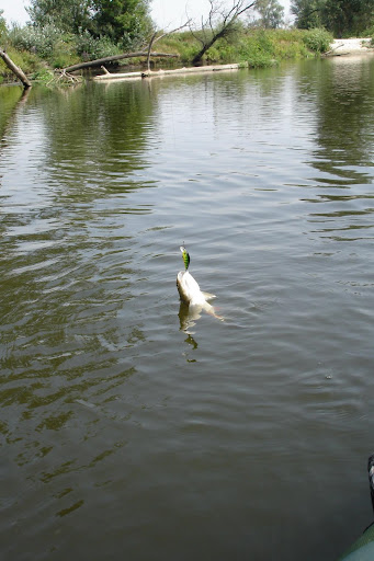 | В субботу был на Млынах. Думал с утра(с 5:30) будет тихо и спокой, но нет, ошибся. С приходом на дамбу, стало ясно, сегодня будет "ноль", т.к. уже в 6:00 в котловане два чувачка собирали сеть(присутствовал краснопер и голавли, прилично).Решил пойти вниз, но и тут засада, по мере продвижени, паралельно со мной греб мужик на лодке и расставлял экраны, так шли мы сним до высоковольтки. Около 7:30 началось движение отдыхающих, рыбалка законнчилась. Возвращаясь домой, остановился покидать сразу за котлованом, поймав голавлика и заработав один хороший удар пошел дамой. Вот так провел субботнее утро.